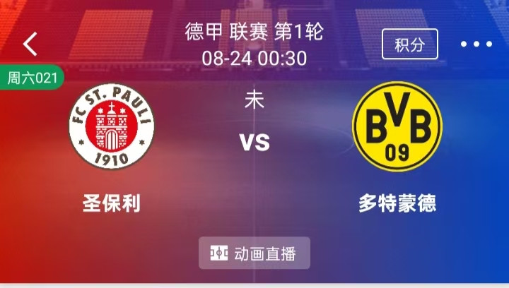 周六 021 德甲 圣保利 VS 多特蒙德